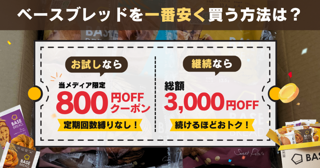 ベースブレッドを一番安く買う方法!クーポンで800円OFF・総額3,000円OFFの目的別ルート