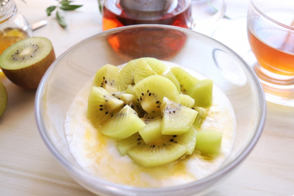 ヨーグルトとキウイフルーツ、またはバナナの組みあわせは、乳酸菌と水溶性食物繊維を一緒に摂れるため、腸内環境を整えやすい点が魅力です。