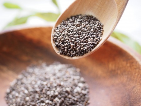 中南米原産の植物「チア」の種で、スーパーフードの代表格。体内で合成できない必須脂肪酸「オメガ3脂肪酸」が豊富に含まれています。浸水させると10倍くらいに膨らんでジェル状になるのも特徴。このジェル状の成分は、こんにゃくにも含まれるグルコマンナンという食物繊維です。
