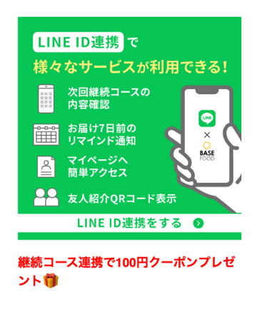 ベースブレッドの公式LINEにお友達登録、ID連結すると100円の割引クーポンがもらえます。