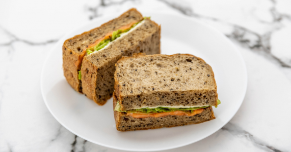 全粒粉パンは食物繊維が豊富で腹持ちがよく、子どもの朝の支度や送迎などに体力を使うママの栄養補給にぴったりな食品です。昼食は、筋力維持に必要なたんぱく質を中心に摂取します。