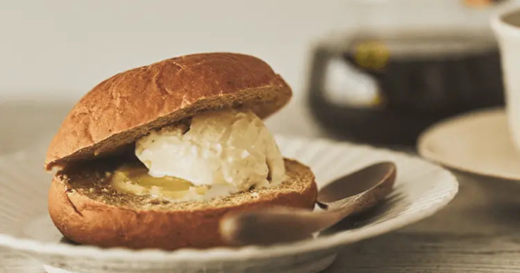 やわもち食感が特徴的で、ハンバーガーやサンドイッチへのアレンジにも適しています。シンプルなパンのため、野菜やチーズ、ハム、サラダチキンなどさまざまな具材をサンドしやすいです。