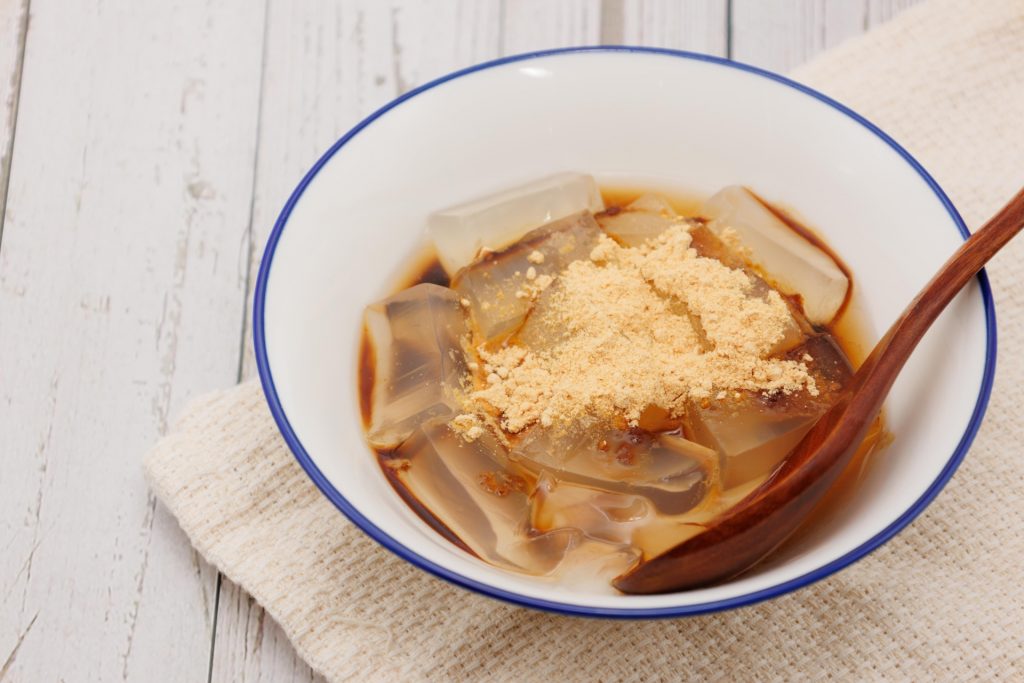 寒天ゼリー、水ようかん、ところてんなどの水分が多い和菓子は、1個あたりのカロリーが低く、ダイエット中に向いています。わらびもちは、きな粉をかけることで、食物繊維とたんぱく質を補えます。