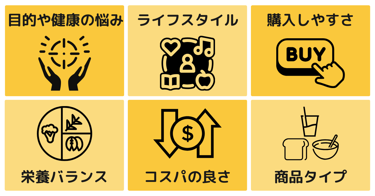 完全食でダイエットをはじめようと考える方は多いものの、さまざまな種類があり迷う方は多いでしょう。そこでここからは、自身に適した完全栄養食を選ぶ際のポイントを紹介します。