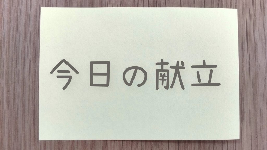 - 金曜日:【ランチ】パスタサラダ(小)+ゆで卵 / 【夜】刺身盛り合わせ+具沢山味噌汁