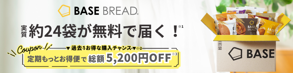 ※1 BASE BREADの当社公式キャンペーン比較に基づく ※2 本ページから購入し、定期もっとお得便(3ヶ月更新)でBASE BREAD14袋セットを4回継続した場合。